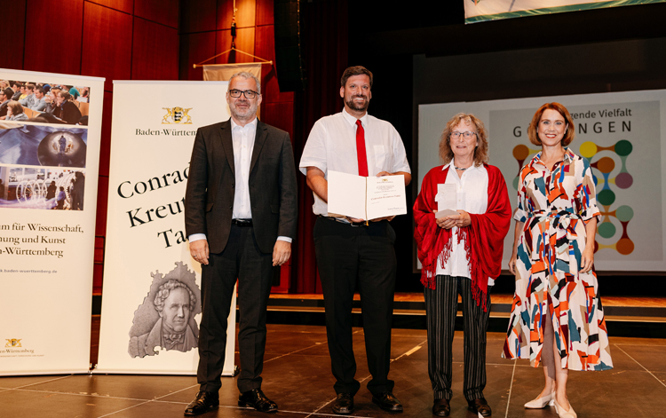 Am vergangenen Samstag konnten nun Sascha Wahl und Anneliese Welz als Vereinsvertreter beim Landesmusikfestival in Göppingen die Conradin-Kreutzer-Tafel entgegennehmen. Sie wird als besondere Auszeichnung der Landesregierung Baden-Württemberg für mindestens 150 Jahre Pflege der Amateurmusik verliehen. Die Übergabe von Tafel und Urkunde erfolgte in einem feierlichen Festakt und wurde von Frau Petra Olschowski, Kunststaatssekretärin, in Vertretung des Ministerpräsidenten an insgesamt 20 Vereine aus dem Bereich Chöre und Musikvereine vergeben.