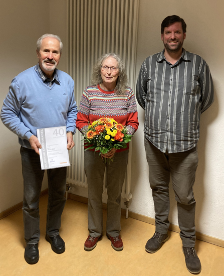 Da Werner Rabel – Sänger im Bass – am Jubiläumskonzert aus persönlichen Gründen nicht teilnehmen konnte, erhielt er nun die noch ausstehende Ehrung für 40 Jahre Singetätigkeit des Schwäbischen Chorverbandes überreicht. Anneliese Welz erinnerte an seine gesanglichen Stationen, die ihn und seine Frau im Rahmen eines Chorprojektes zum Liederkranz gebracht hatten. Auch nach diesem Adventskonzert blieben die Beiden dem Waldhäuser Chor treu und Werner Rabel gehört damit zu den beständigsten Chormitgliedern über alle persönlichen Veränderungen hinweg. Beate Wahl erläuterte anschließend als Vereinskassierin die Finanzlage und ging dabei ausführlich auf die Ergebnisse der einzelnen Veranstaltungen 2022 ein. Sie hob außerdem hervor, dass der Verein aus Anlass des Jubiläums von verschiedenen Seiten sehr großzügige Spenden erhalten hat, unter anderem durch die Stadt Lorch, den Ortsverband der Vereine, Gewerbliche und Privatpersonen.
